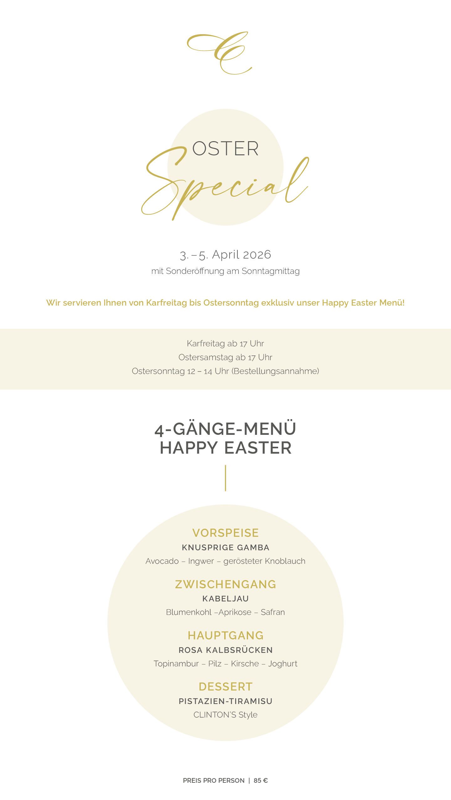 An allen 3 Tagen wird ausschließlich unser Special-Menü angeboten.